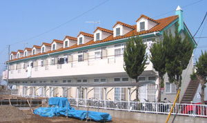 オレンジ屋根が目印の2階建てのアパート