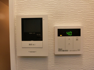 | 左側はTVドアホンです。 右側は便利な給湯器の温度設定リモコンです。 |